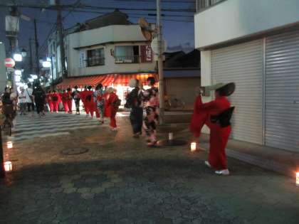 写真は、先日蕪村通り商店街で行われた「蕪村おどりと万灯篭」です。