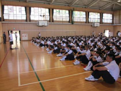 陸上400メートルではケンブリッジ飛鳥選手の活躍に地域の皆様も注目されたのではないでしょうか。中学校1・2年を君たちと同じようにこの淀川中学校で過ごした飛鳥君、数年を経て、日本中の人気者となりました。どんなことでも一つのことを粘り強くやり遂げることができる人になってほしい。そんな思いを込めて2学期最初の話をいたしました。