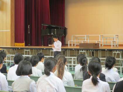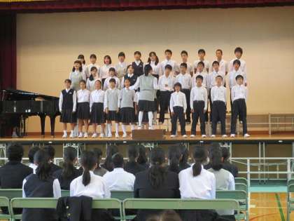 学年代表のあいさつに始まり、1組、3組、2組の順に歌いました。最後に全員で合唱しました。