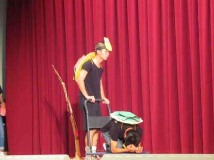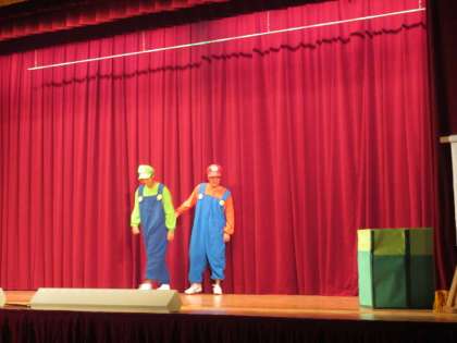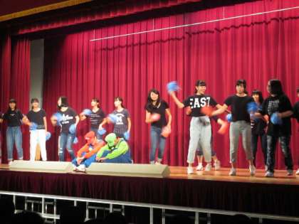 次に、3年生の劇です。3年生は各クラスごとの発表です。まず4組、「スーパー・マリオ・ブラザーズ」、先日のリオオリンピック閉会式では安倍首相がスーパー・マリオに扮して、話題になりました。