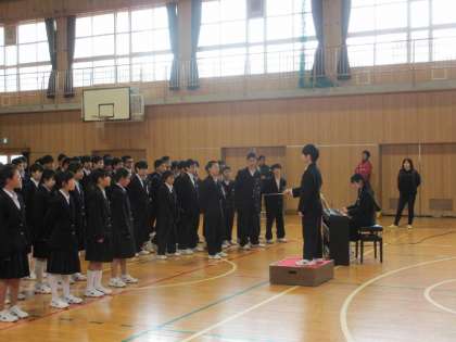 その後、3年生代表による1・2年生に送る言葉と合唱を行いました。
