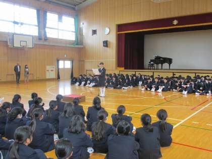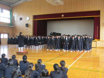 前回に続いて、3年生代表の言葉と合唱です。