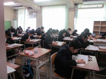 本日、全国学力・学習状況調査を行いました。全国の中学3年生が一斉に同じ問題に取り組みました。国語と数学それぞれ基礎的なA問題と応用的なB問題、また生活についての生徒質問紙があります。結果については2学期中ごろ学校に届き、さらに生徒個々に成績表を渡します。