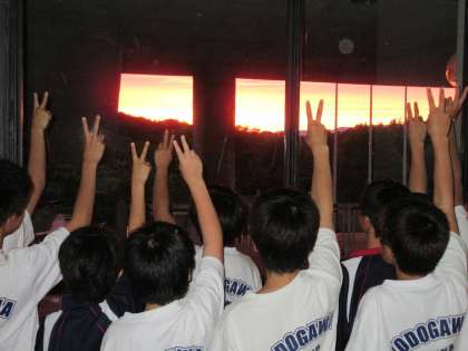 いよいよ夕食です。外を見ればきれいな夕陽が輝いていました。