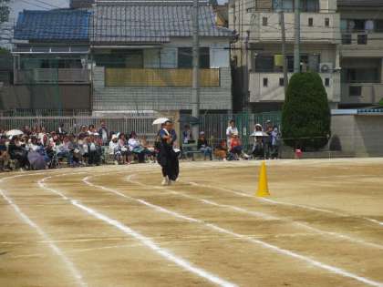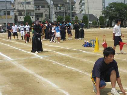 次は男子運動部のリレーです。迫力のレースでした。袴の剣道部は勝負の点ではハンデが大きすぎましたが、立派に最後まで走り切ってくれました。アンカーの面打ちは会場を沸かせていました。