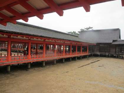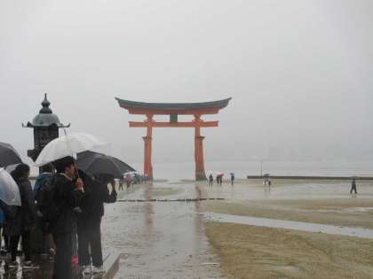 かなり強い雨が降っていたにもかかわらず引き潮だったので、大鳥居の周りにも沢山の人たちが歩いていました。