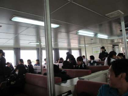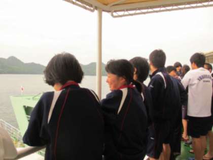 お世話になった宿舎の人たちとお別れし、8時にバスに乗車し、竹原港に向かいました。そして、フェリーで大崎上島に向かいました。
