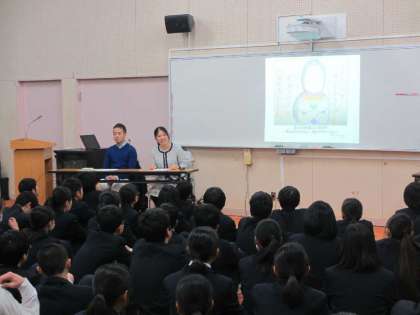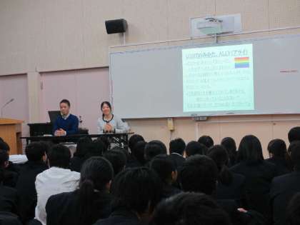 2年生では、今日「多様な性のあり方」LGBTについて考える学習を行いました。レズビアン、トランスジェンダーの方をゲストティーチャーのお招きしました。体の性と心の性が一致しない。お二人のこれまでの生き方について語っていただきました。