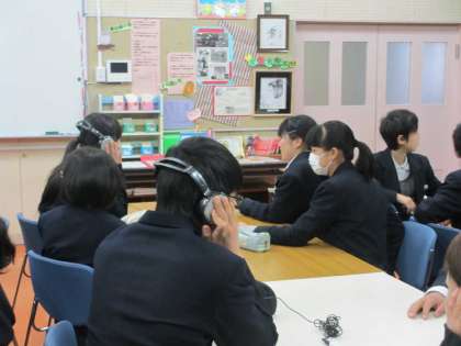 口の動きだけで、会話の内容を聞き取ることの難しさを体験したり、ノイズの流れるヘッドホンをし、相手の声を聞きとる難しさを体験したりしました。