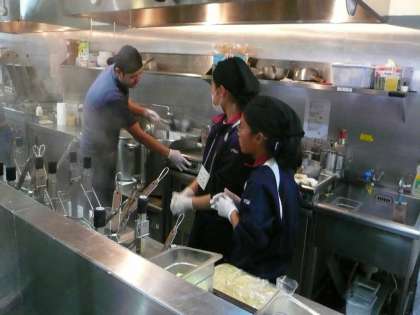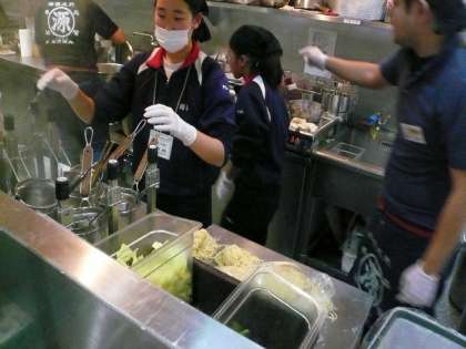 ラーメン店、チーズケーキ店で働く生徒たちです。なかなか制服が似合っています。