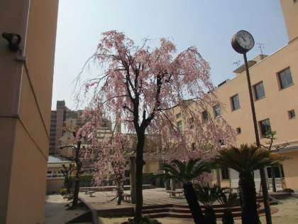 写真は、中庭に見事に咲き誇る枝垂桜です。