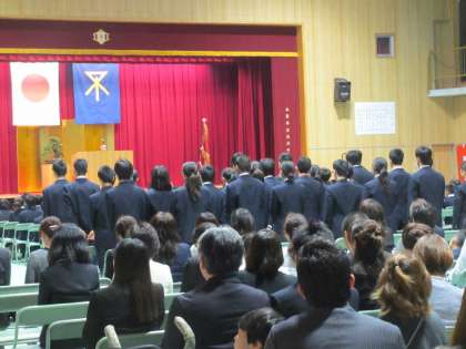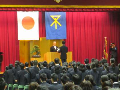 在校生全員が起立し、代表が新入生を迎える言葉を送りました。新入生代表がこれからの決意を述べました。