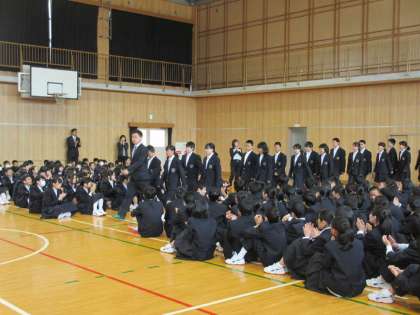 続いて始業式を行いました。3年生にとっては卒業後の進路を考える一年になること。2年生にとっては飛躍の年であること。1年生にとっては中学校生活に慣れること。ひとりひとり、目標を持って学校生活を送ってほしいと思います。
