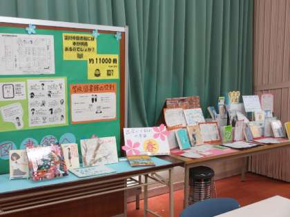 毎週木曜日は、学校図書館補助員の藤田智子さんに来ていただいて、終日図書館を開館していただいています。
