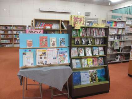 図書館の写真を掲載しましたが、元気アップ支援員の方々が、元気アップコーナーとして部活動に関する書物を集めていただいたり、さまざまな工夫を凝らしてくれています。今は3年生の修学旅行に合わせ、鹿児島に関する書物を陳列していただいています。