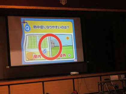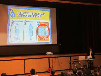 成人の体の60%が水分であるこや熱中症になりやすい体の状態や環境についてお話をお聞きすることができました。また、上手な水分の取り方などを学ぶことができました。