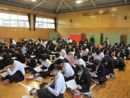 修学旅行のしおりが完成しました。4限目格技室で、しおりを使って生徒たちに持ち物や集合場所、具体的な行程と活動内容の説明を行いました。