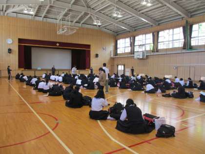 今日は6限目に体育館で持ち物点検を行い、最終注意を行いました。