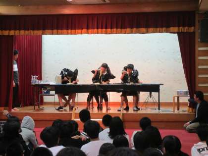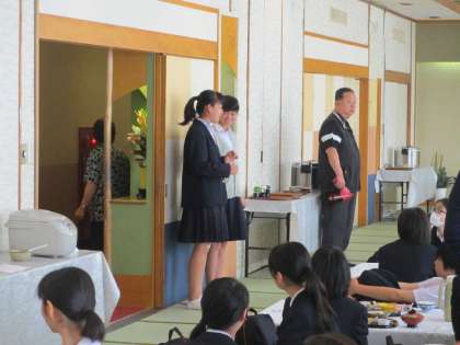 そして二人羽織、生徒、先生が一体となったリクレーションの時間もあっという間に過ぎていきました。そして、各部屋ごとで今日の反省と就寝準備を行いました。生徒たちも大阪からの長旅と体験活動に疲れたのか、部屋が静かになるのも早かったように思います。