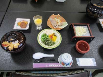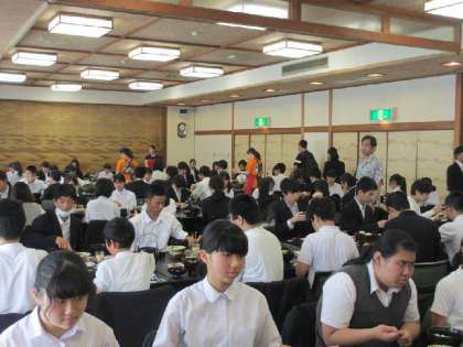 資料館を出て、特攻隊員が出撃までの日を過ごした三角兵舎を見学しました。そして、近くの施設で昼食をいただきました。名物の鶏飯でした。