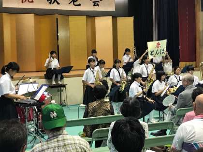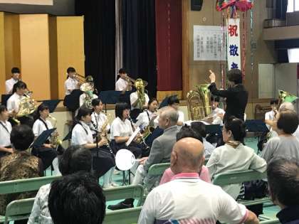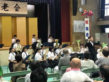 昨日、敬老の日9月17日(祝)、大東小学校で大東地区敬老大会が行われました。本校吹奏楽部が、第2部のオープニングを飾り、演奏を披露いたしました。