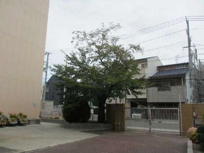 校門の桜の葉も黄色く色づいた葉が見られるようになってきました。