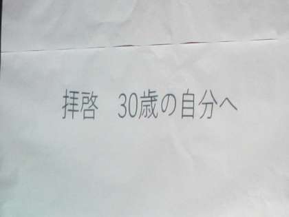 演劇の次に、3年生全員が舞台に並び、ひとりひとりが自分を見つめ、自分について考えながら描いた自画像をスライドに映しながら、全員が書いた30歳になった自分にあてた手紙を、代表生徒が一つにまとめ、朗読しました。