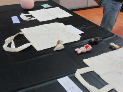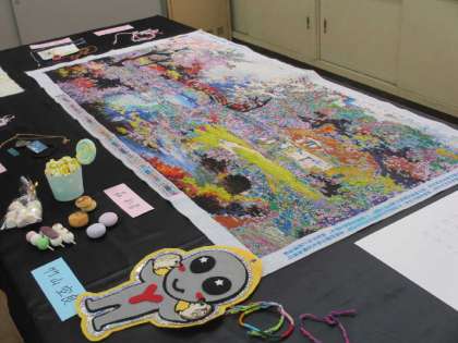 そして、家庭科部の作品の展示です。大きなタペストリーの作品が目を引きました。