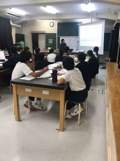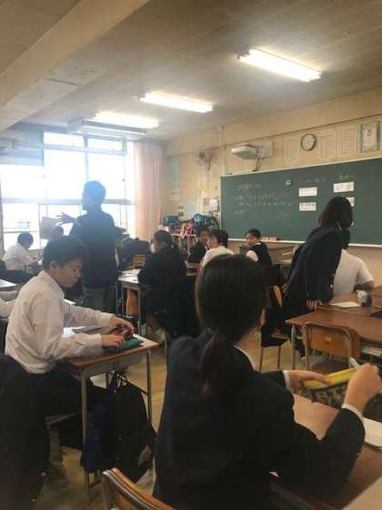 9月には3年生で行いましたが、11月6日(火)の6時限目に1年生で授業研究会を行いました。全教員が1年生の各クラスの授業を参観し、その後、より分かりやすく、より意欲的に取り組める授業となるよう改善を図るために行っています。