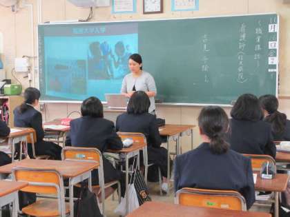 下はがんの専門看護師の方がお話しくださっているところです。患者さんと病院のスタッフ等をつなぎ、よりよい治療を行うお仕事だそうです。