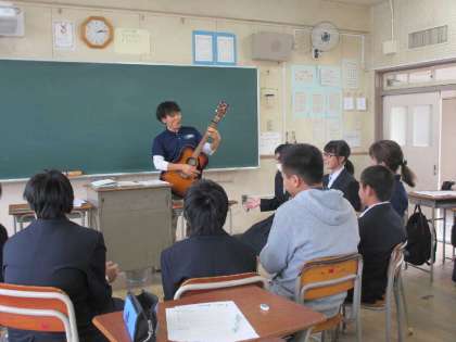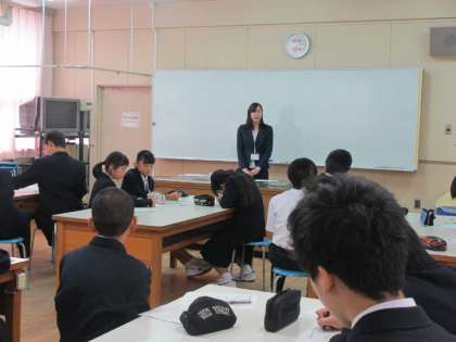 最後は旅行業者の営業員の方のお話です。ちょうど社会の時間に「行ってもらいたい国をプレゼンしよう!」というのをやったばかりだったので、生徒も興味深く聴いていました。