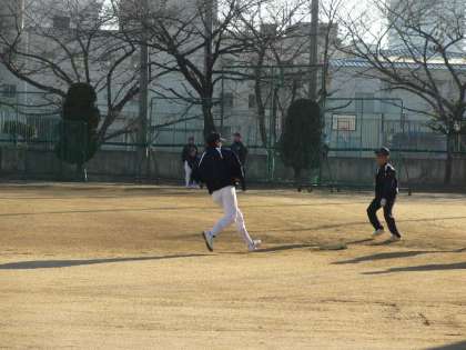 運動場では野球部が今年最初の練習を行っていました。元気いっぱい、寒さを吹き飛ばしていました。