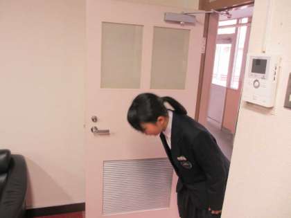 まず、入室態度、服装や身だしなみ、言葉遣いなどについて注意することを話した後、名前、出身中学校、担任の先生の名前を聞きました。さらに受験校を選択した理由をそれぞれ尋ねました。また、中学校での頑張ったことや一番思い出に残っていること、自分の長所や短所を聞きました。