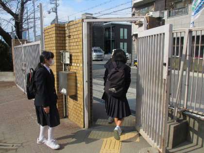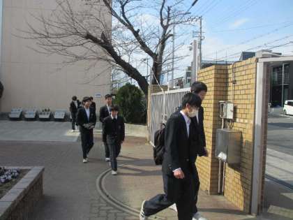 3時限目の授業を終了し給食後、私立高校を受験する生徒たちは一度図書館に集合し、受験校ごとに出発しました。