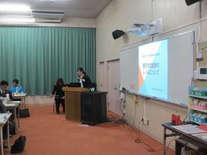 今日の給食をご試食いただいた後、淀川小学校の栄養士からお話を聞きました。そのあと、配膳のようすや各教室で給食を食べる生徒たちの様子を見ていただきました。