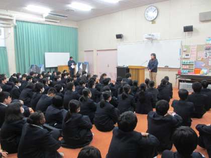 今日の6時限目は3年生全員を対象に受験の注意を図書館で行いました。