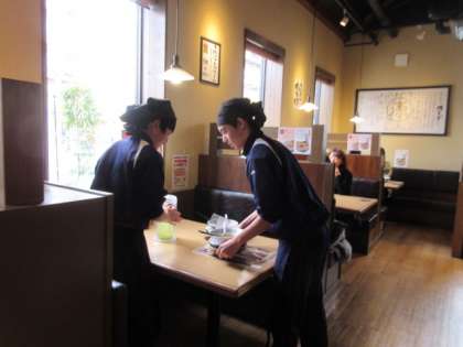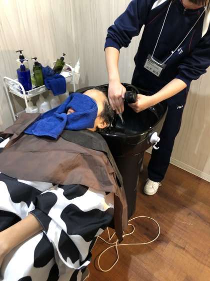 ラーメン店では接客や食器を洗ったり、食材の扱いなどを学んだりしていました。美容室では生徒同士で洗髪の体験をさせていただいていました。