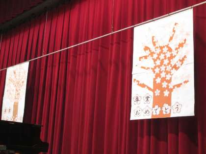 次に在校生が花びらに卒業生へのメッセージを書いた桜が披露されました。そして3年生代表が喜びの言葉を述べ、続いて歌を歌いました。