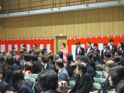 卒業証書授与に始まり、学校長、PTA代表式辞、在校生代表の送辞、卒業生代表の答辞と続きました。