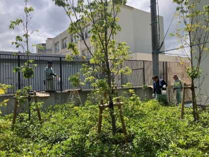 淀川小、淀川中の管理作業員さんが、合同で第2グラウンドの門と小中の境目の外柵を2日間にわたって塗装をしていただきました。