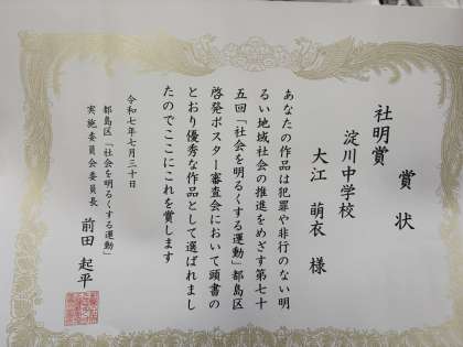 7月30日に「社会を明るくする運動啓発ポスター」の表彰式が都島区民センターでおこなわれました。