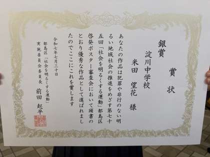 80作品以上の出品の中、本校からは2名の生徒が表彰されました。