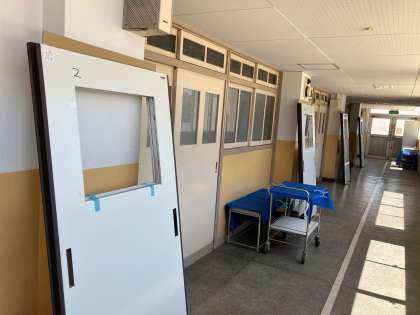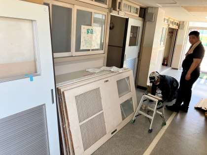 北館長寿命化工事を半年後におこなうのですが、先行して教室の扉を木製からスチール製に新調することになりました。