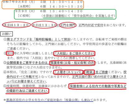 クリック→ 授業参観・授業公開 時間割表および校内地図