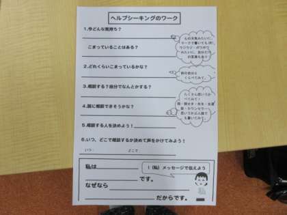 ワークシートを使って、困った時は誰に相談するか、どうやって相談するかの練習をしました。
