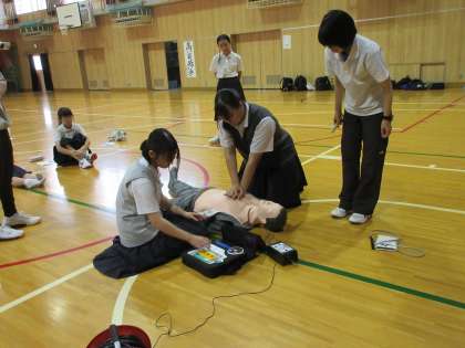 講習を受ける必要性を知り、心肺蘇生法(胸骨圧迫・人工呼吸)やAEDの訓練をしました。