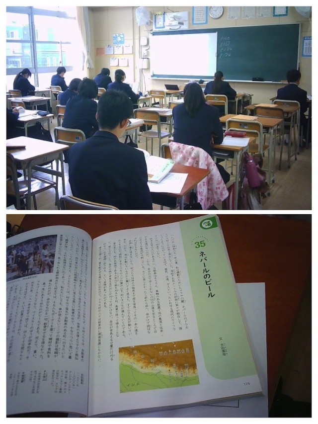写真は2年1組と2年2組の道徳の授業の様子です。