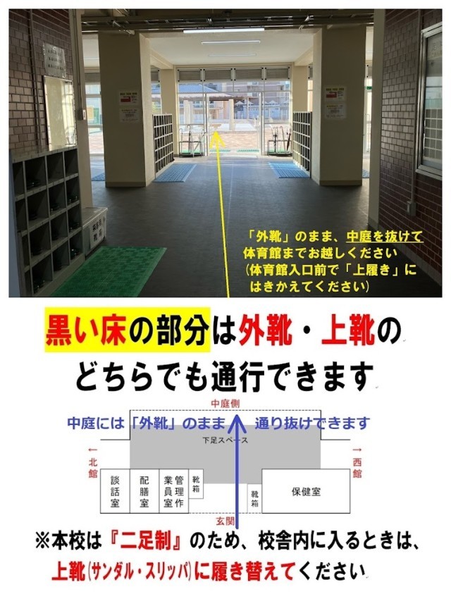 *説明会終了後(15時頃)から16時30分まで、本校格技室(体育館横)にて、採寸および物品販売がございます