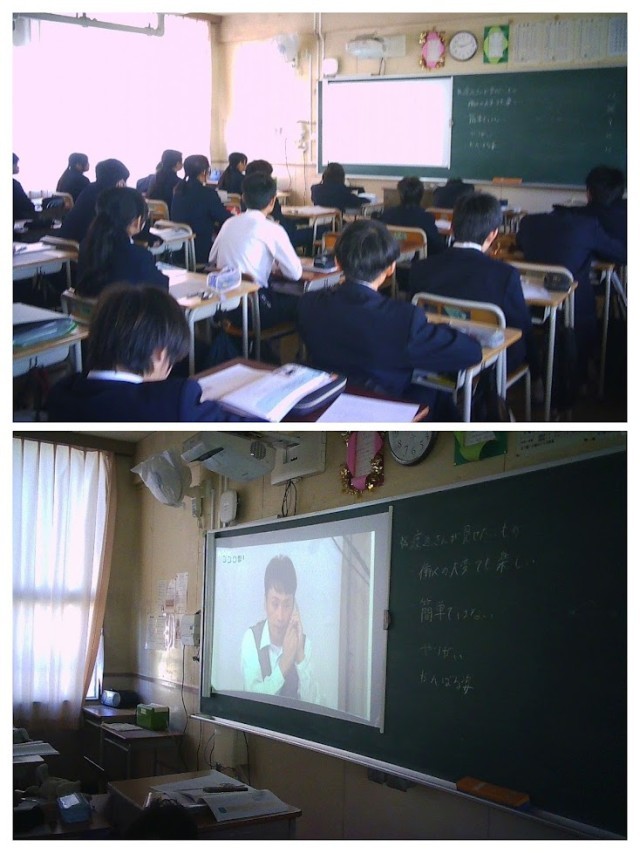 写真は1限 1年1組と1年2組の道徳の授業の様子です。