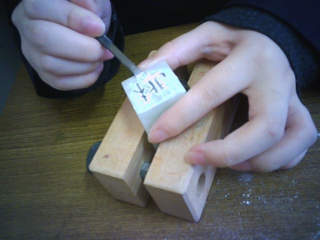 篆刻(てんこく)の授業でした。